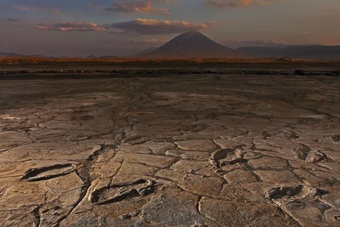 坦桑尼亚伦盖火山阴影下的泥滩里发现万年前古人类的足迹化石