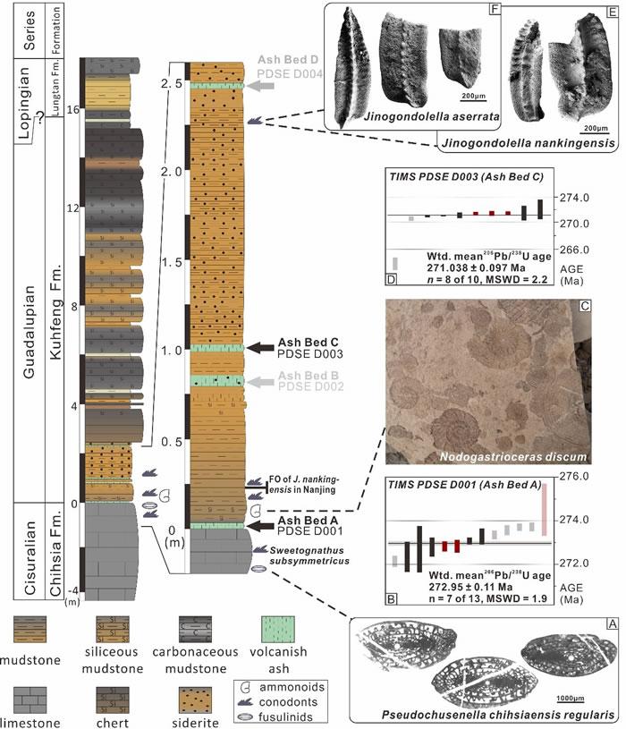 (化石网报道)据中国科学院南京地质古生物研究所:中二叠世(瓜德鲁普世)发生了一系列全球重大地质和生物事件。泛大陆由长期稳定的汇聚阶段转入裂解阶段,海平面大幅度下降,海水87Sr/86Sr比值在瓜德鲁普世卡匹敦期达到显生宙最低值,地磁极性由石炭纪晚期到二叠纪中期反向极性超期进入二叠-三叠纪混合极性超期,瓜德鲁普世末期还发生了一次严重的生物大灭绝事件,与之伴随的峨眉山大火成岩省事件被认为与这次生物灭绝有着紧密的联系。阐明这些事件发生的时间和速度需要高精度的中二叠世年代地层框架。但相比二叠纪其它时间段,二叠纪中期年代地层框架的研究却非常薄弱。二叠纪现有的高精度同位素年龄数据几乎都来自乌拉尔统和乐平统,瓜达鲁普统(中二叠统)的高精度同位素年龄数据几乎没有。国际年代地层表中的中二叠统年龄基本上都是依靠内插法估算得出的。