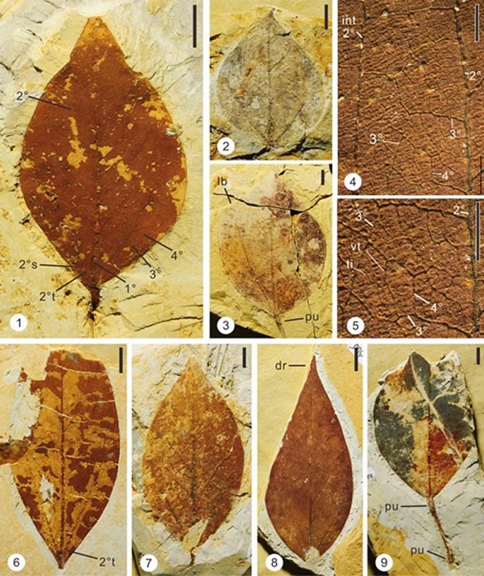 版纳植物园古生态研究组博士研究生黄健在周浙昆研究员的指导下,通过对在云南文山发现的马蹄荷叶片和托叶化石的研究,建立了基于叶片的化石新种:尖叶马蹄荷(Exbucklandia acutifolia)。化石记录表明马蹄荷属曾广泛地存在于北美和东亚,而随后北美种群的灭绝导致了该属目前仅存于东亚地区。尖叶马蹄荷的叶形态最接近现生的大果马蹄荷(E. tonkinensis),这一树种目前分布在中国-日本森林区域之中,然而化石产地区域现已被中国-喜马拉雅分布的马蹄荷(E. populnea)所覆盖。这说明马蹄荷属不同物种之间的分布区在漫长的地质历史中已经发生了变化,而总体的趋势便是中国-喜马拉雅区域的扩张以及中国-日本区域的退缩。另外,结合叶片形态、最近亲缘种的生境、共存植物的生境以及植物群的气候重建,均表明尖叶马蹄荷生活在一个相对今天降雨量更高的环境中。