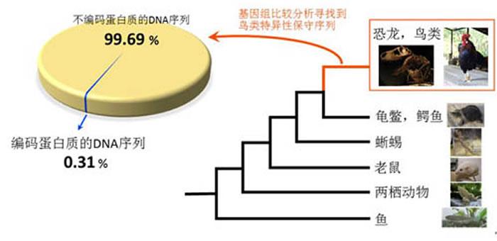 鸟类在演化过程中几乎没有产生新的基因:通过比较48只鸟及9种其他动物的基因组,发现在鸟类特异保守的DNA序列中,几乎全是(99.69%)不编码蛋白质的。