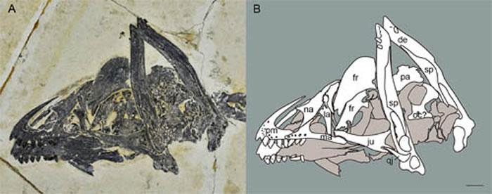 会鸟STM 16-18头骨的照片和线图 (胡晗供图)