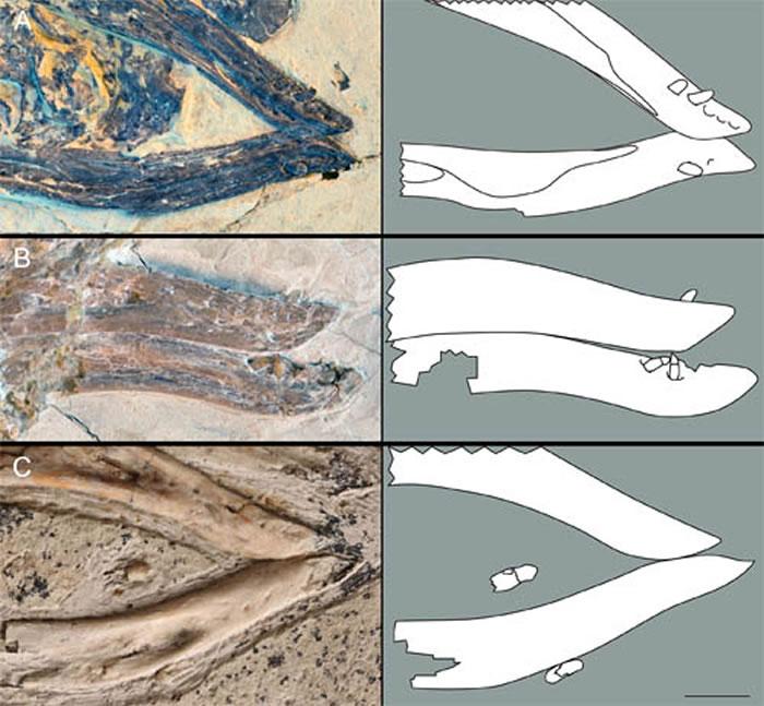 一些保存有下颌齿的会鸟标本 (胡晗供图)