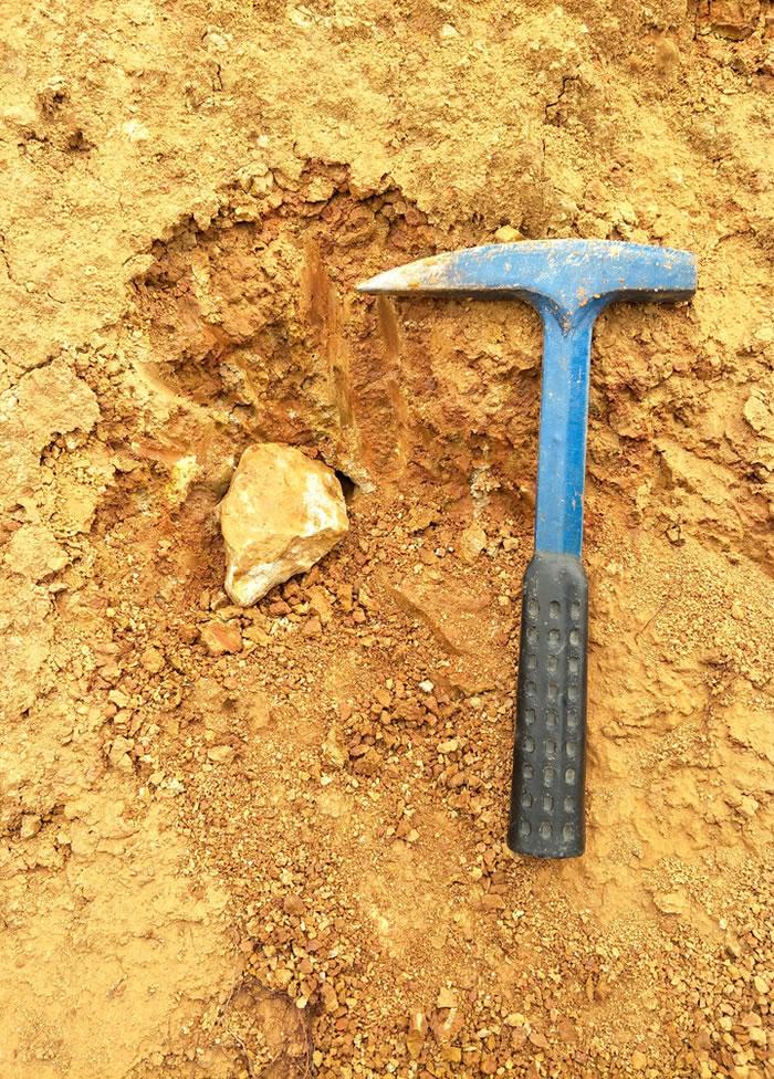 3月1日,在嵊州崇仁镇安江村下安田自然村兰山庙南侧的网纹红土中,专家们发现了一块旧石器时代的石核。随后,在安江村江村自然村大田山、赵马外寺山、钳口大坪岗等地的网纹红土中,又多处发现石核、石片等多种类型的旧石器。专家介绍,网纹红土是一种灰白色网格状的红色黏土,浙江网纹红土形成年代大约在12.6万年至100万年以前,从这些土层中出土的石器,至少在10万年以前由古人类打制而成,正值旧石器时代。