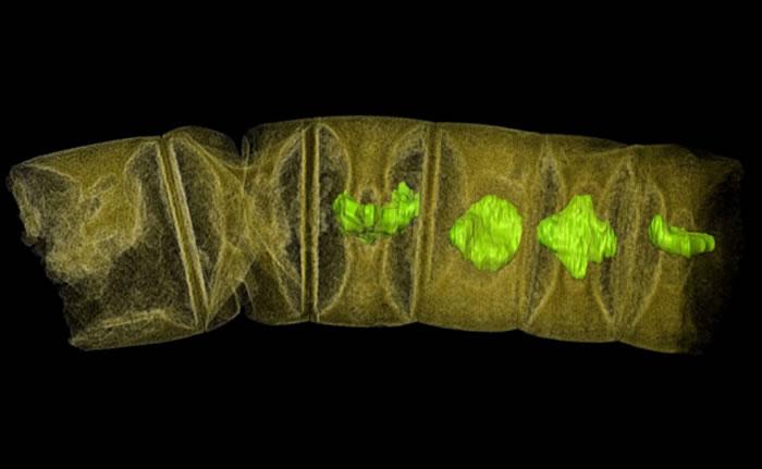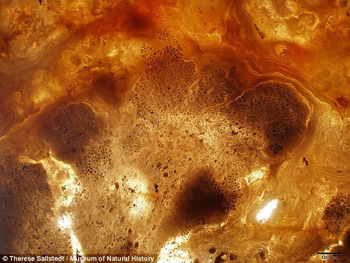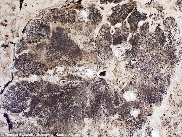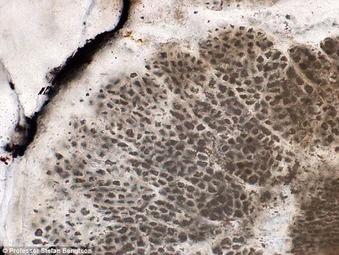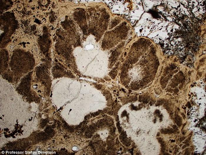 自然历史博物馆的特蕾泽·塞勒斯特德借助显微镜对这块看起来毫不起眼、可追溯到16亿年前的微生物化石进行观察时,发现了某些独特的、似乎远比这一时期高级的东西:一个巨大的肉质丛,类似复杂的多细胞红藻。她描述称:“与周围的细菌化石相比,我看见的化石真的非常大,其内部井然有序,在真核生物出现之前的化石样本中不会看到这种情况。我意识到,这是一种比细菌更加高级的生物。”