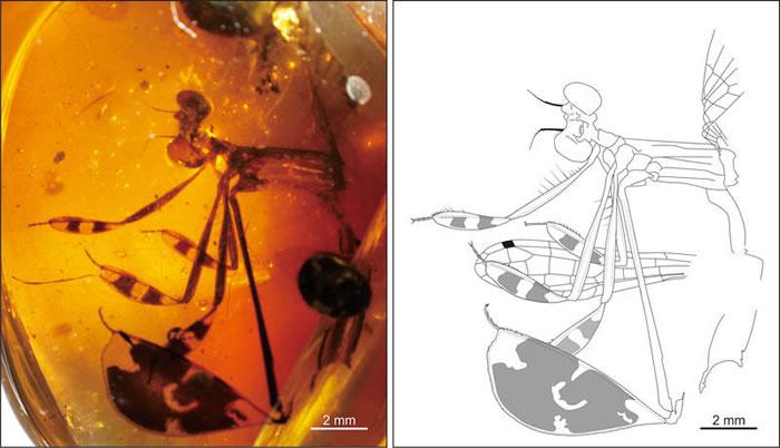 (化石网报道)据中国科学院南京地质古生物研究所:求偶行为广泛存在于现生昆虫的各个类群,但化石记录极为罕见,这是因为昆虫(包括其他动物)行为保存为化石的几率极低。昆虫的古行为研究多借助间接的证据来推导,如一些特殊的身体结构。