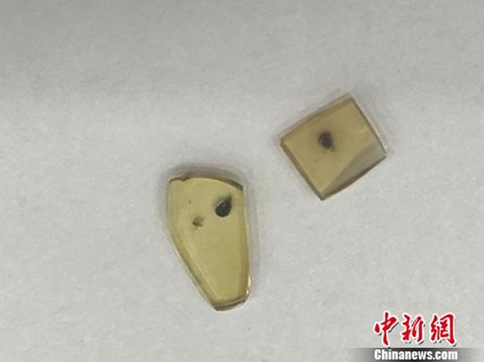 此次研究的白垩纪琥珀。琥珀中黑色部分为螱客。