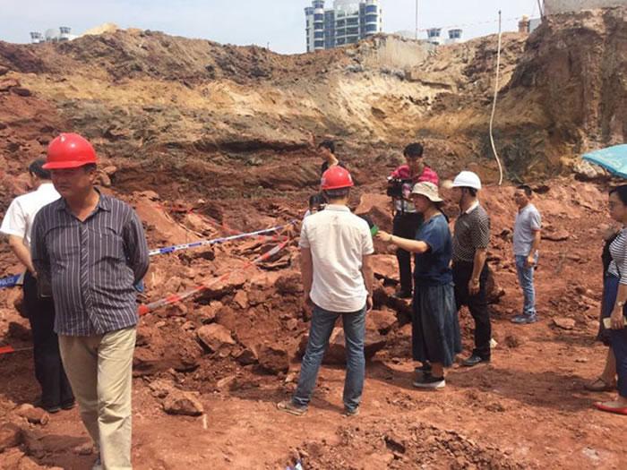这一说法得到了地质与古生物专家张显球的认可。“这处工地刚好挖出了一窝恐龙蛋。”张显球来到现场考察后表示,当地是棕红色含砾沙岩,地层上属于白垩纪后期,距今已有约7000万年。