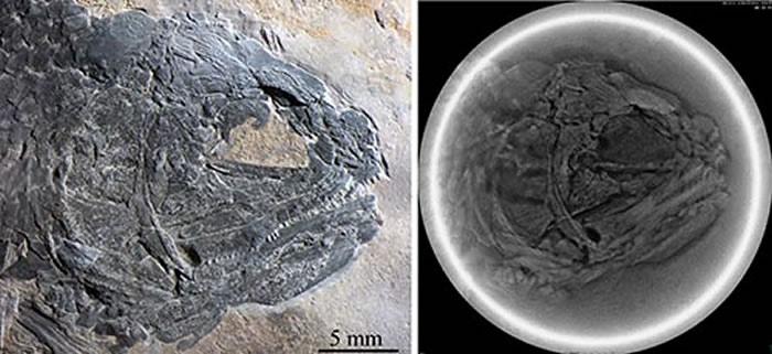 三叠复兴鱼头骨及计算机断层扫描图(徐光辉供图)