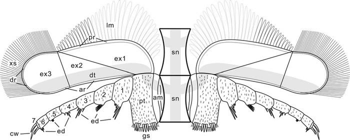 作为已灭绝的节肢动物,三叶虫软体解剖信息缺乏,使其演化关系长期存在争议。现生的节肢动物主要分为两大类:一类是以蝎子、蜘蛛、蜱螨、鲎等为代表的螯肢类;另一类是由多足类(以蜈蚣、马陆等为代表)、甲壳类(以虾、蟹等为代表)和六足类(以昆虫为代表)组成的有颚类。传统的观点认为三叶虫和螯肢类的演化关系更近,而近年来越来越多的证据开始支持三叶虫和有颚类的关系亲密。因此,新的三叶虫软体构造,尤其是附肢的解剖信息,成为解谜三叶虫演化关系的关键。