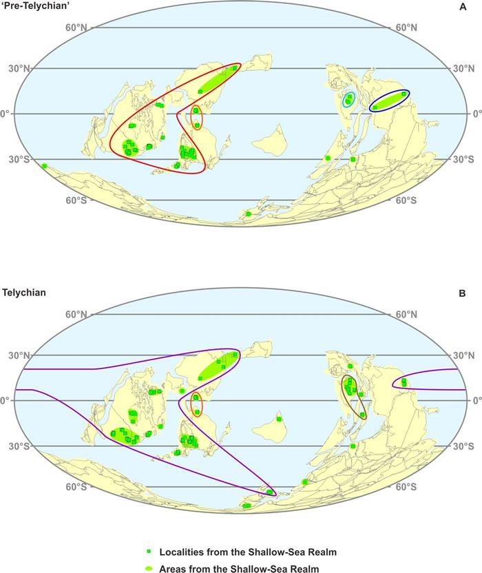 近日,中国科学院南京地质古生物研究所陈中阳博士、樊隽轩研究员与爱沙尼亚塔林理工大学地质研究所Peep Männik研究员整合并厘定了志留纪兰多维列世全球250个产地的牙形刺化石记录,通过定量分析,分别建立了志留纪兰多维列世“前特列奇”时间段(包括鲁丹期和埃隆期)和特列奇时间段的全球浅海界牙形动物的古地理区系,并根据其经向分布的特点,提出志留纪兰多维列世牙形动物古地理区系形成的主要控制因素为大洋环流,而非纬向的温度等因素。