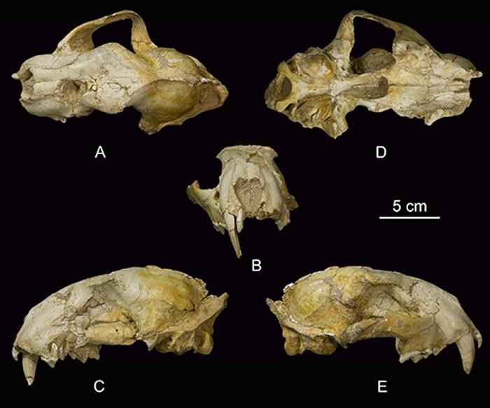 甘肃临夏盆地石磊地点副剑齿虎头骨化石(李雨供图)