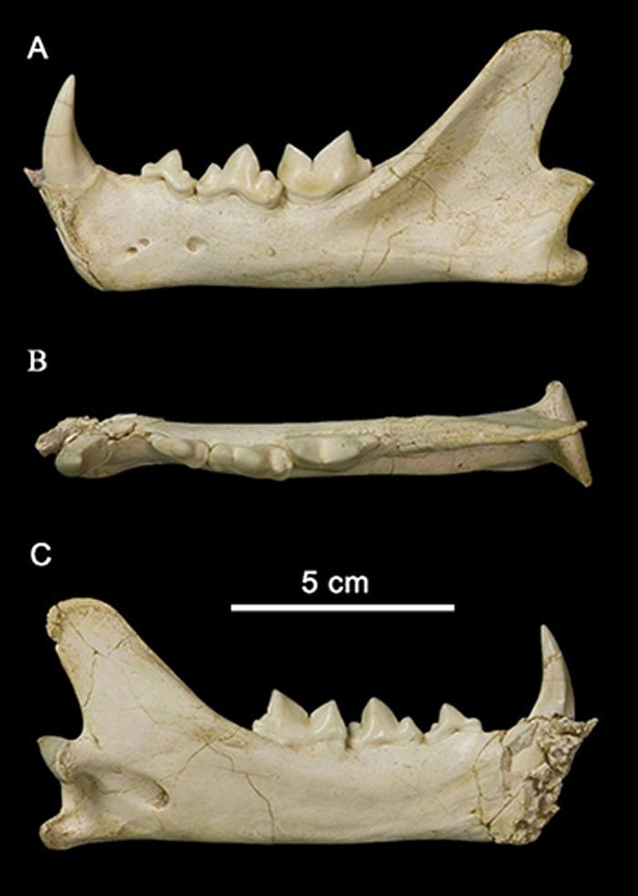 甘肃临夏盆地石磊地点副剑齿虎下颌化石(李雨供图)