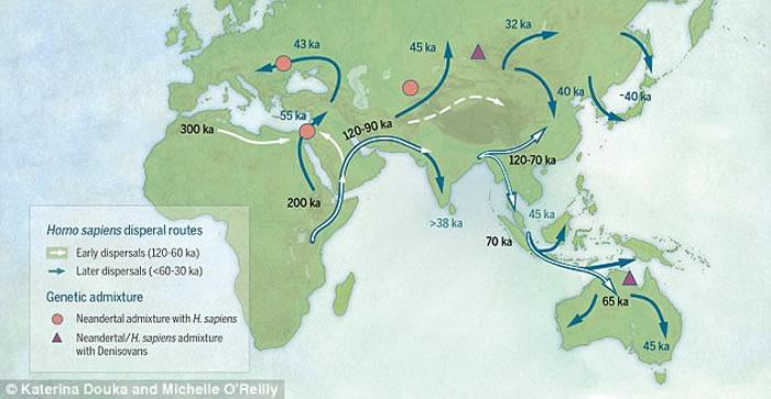 马克斯普朗克人类历史科学研究所的科学家提出,过去10年在亚洲偏远地区发现的人类遗骸,可追溯至约7至12万年前,时间远超大迁徙,推断部分人类祖先可能早已离开非洲,甚至去到现今的澳洲地区。共同领导研究的教授彼得拉利亚(Michael Petraglia)指,首批人类祖先可能采取小群形式离开非洲,之后与早在亚洲地区生活的其他人族繁衍,相信人类进化史比想像更复杂。