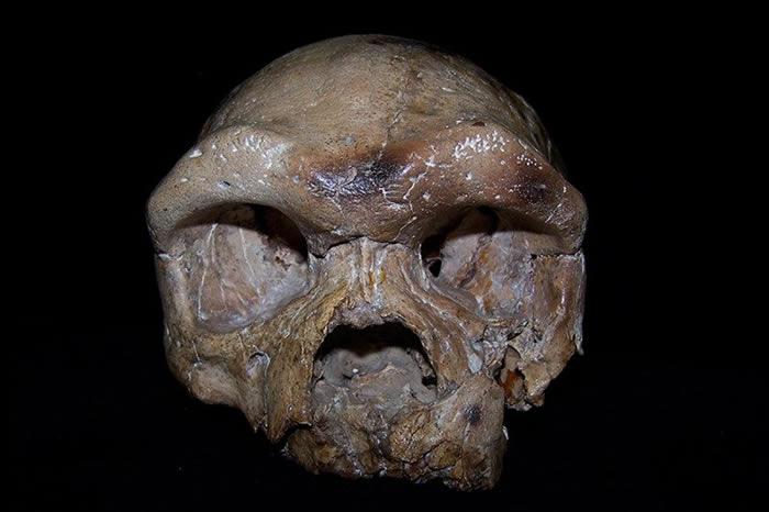 中国陕西发现的大荔人头骨化石(化石网配图)