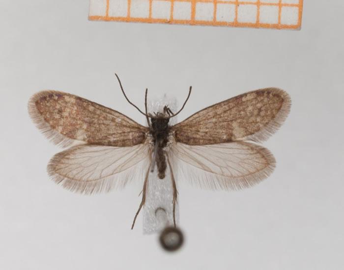代表仍然存在的属于有喙亚目的一种原始飞蛾的实例,这些飞蛾具有为吸吮液体(花蜜)而做出适应性改变的长鼻喙。比例尺度为1厘米。
