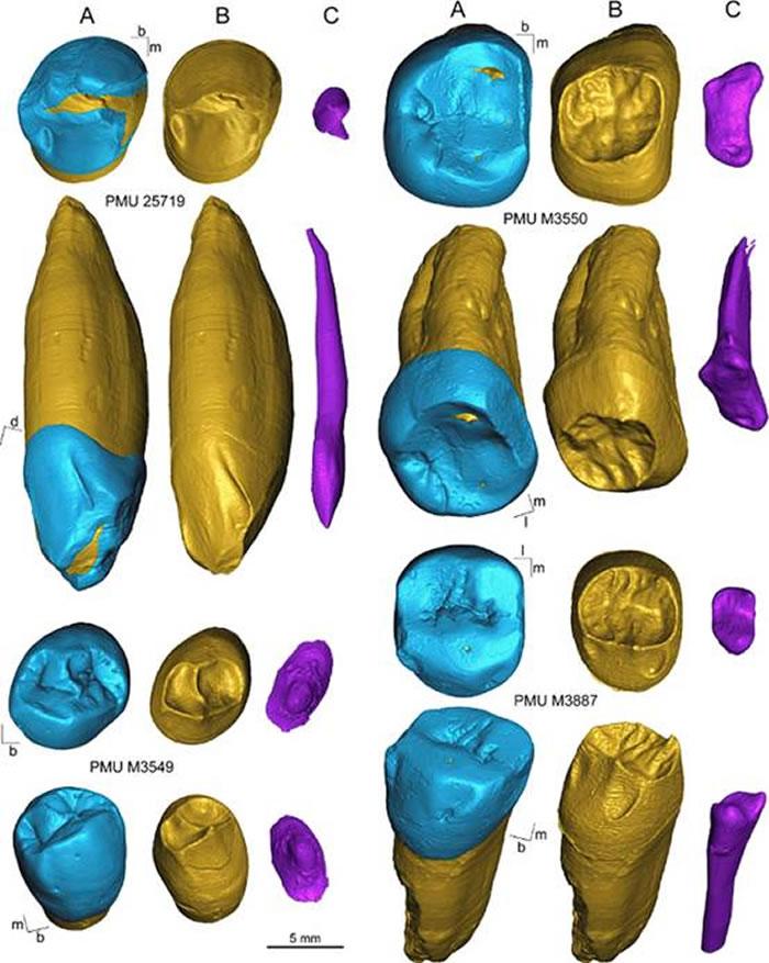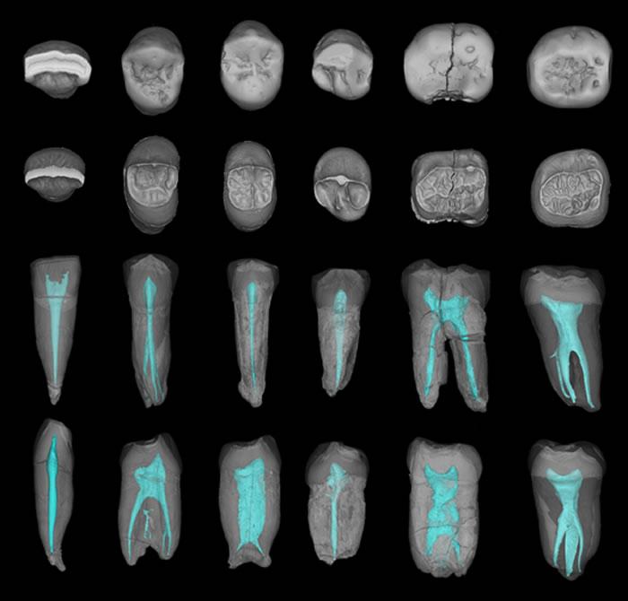 中国科学院古脊椎动物与古人类研究所馆藏的6颗周口店直立人牙齿-显微断层扫描及三维复原(邢松供图)