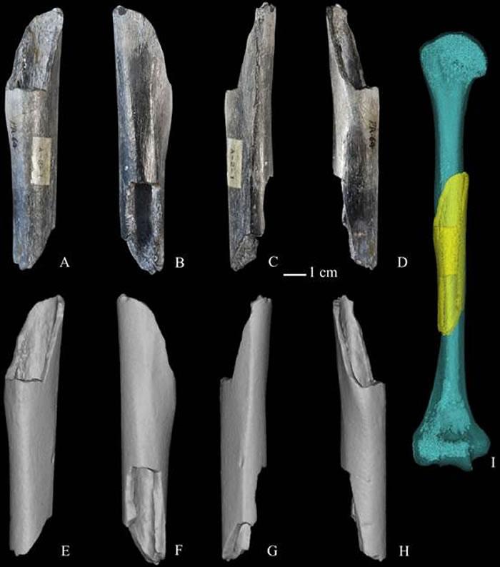 周口店直立人肱骨-原件及显微断层扫描后的三维复原(邢松供图)
