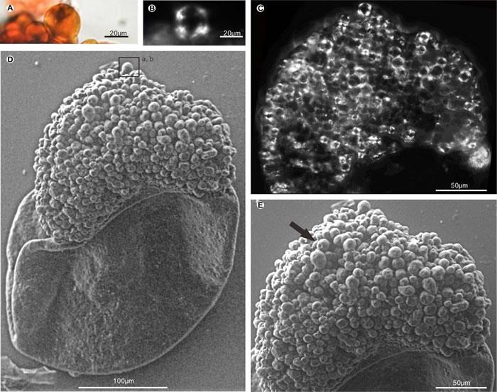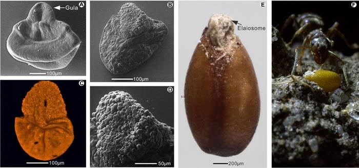 通过与现生一些依靠动物传播的植物种子对比,研究人员认为这些位于大孢子近极面的淀粉团块,与现生一些种子上常出现的一种被称为油质体(elaiosome)的可食附着体非常接近。