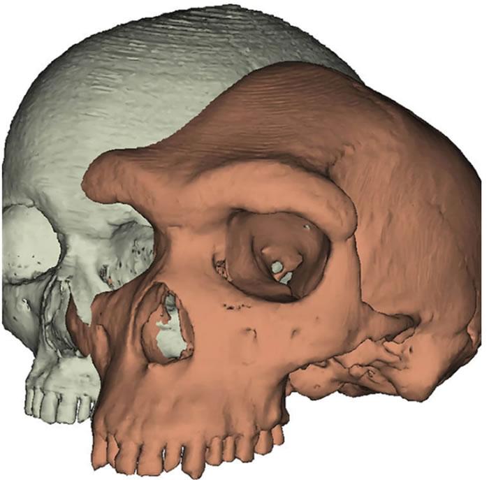 约克大学制作的现代人类头骨与古人类头骨Kabwe 1对比图