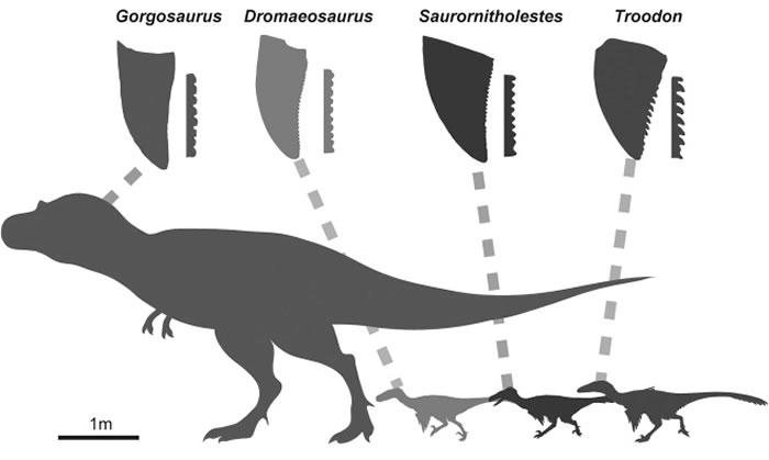 (化石网报道)据中国科学报(唐凤):在西班牙和加拿大的上白垩纪(约1亿至6600万年前),掠食性的兽脚类恐龙都依赖于刺穿和拉咬策略捕杀和吃掉猎物。但研究人员对其锯齿状牙齿的磨损模式进行了仔细研究,并指出这些恐龙并不一定是直接竞争食物的。他们中的一些显然是捕食更大的、挣扎的猎物,而另一些则坚持更柔软或更小的食物。相关论文近日刊登于《当代生物学》杂志。