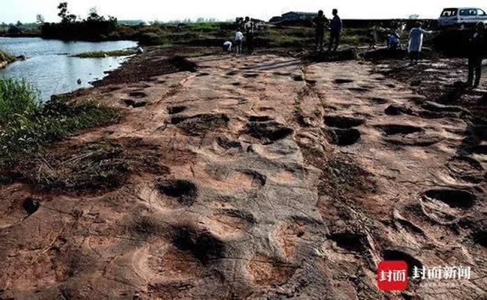2015年,化石爱好者在该地探索时,意外发现了该地密集的恐龙足迹。为了研究这批珍贵的足迹,2017年4月,由中国地质大学(北京)的邢立达副教授等学者组成的考察队考察了这批足迹。