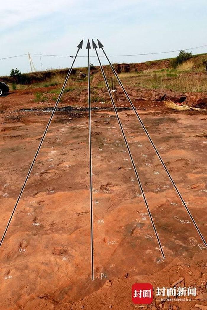 邢立达等人考察后发现,一般来说,一个恐龙足迹点的恐龙足迹种类只有一两种,但此次发现的足迹点的恐龙足迹有7种类型,包括肉食性恐龙、植食性恐龙,以及鸟类足迹,整体足迹的数量超过300个。在这些恐龙足迹中,最令邢立达等人兴奋的是四道并列的两趾型足迹,侏罗纪和白垩纪的两趾型足迹大多数属于恐爪龙类恐龙所留。这类恐爪龙中有一种叫驰龙类,它们生性十分凶狠,常常出现在包括《侏罗纪世界》等恐龙电影里。