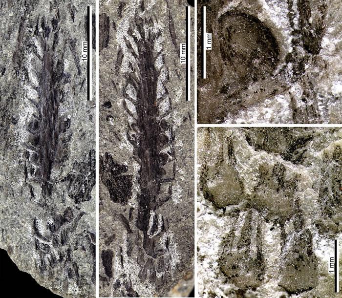 近期,中国科学院南京地质古生物研究所徐洪河研究员、傅强副研究员、硕士生汪瑶等组成的工作团队在湖南长沙地区开展古生物学和地层学的研究工作,在该区域中泥盆世跳马涧组发现了一种新型的原始鳞木类石松。该植物茎干纤细,叶基椭圆形。叶片向近轴侧卷曲并分叉成三个裂片,有一个小的尖端向下;中间的裂片最长,三个裂片紧密平行排列,裂片基部具有一个细小的突起。孢子叶并未聚成孢子叶球,孢子囊呈椭圆形,见纵向开裂线,以垫片着生于孢子叶近轴侧。该植物被定名为傅氏跳马石松(Tiaomaphyton fui),属名的建立来自植物的产地跳马镇。