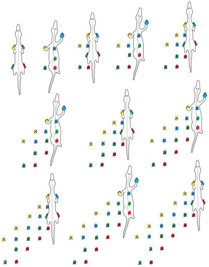 据报道,罗兰教授于2016年第一次接触到这些足迹。因为这些足迹是横向的,所以他最初认为是“两只动物并排行走”留下的,但这说不通。于是,他回家研究并绘制了他对该动物的“奇特的行舞步法”的发现。