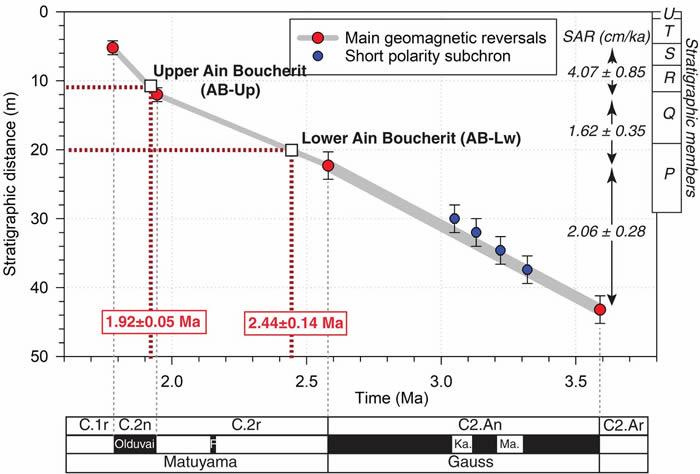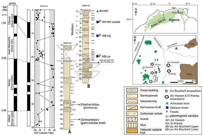 由于Ain Hanech没有火山矿物——火山矿物是东非考古地址年代测定的黄金标准,研究人员使用了另外3种年代测定方法,尤其是古地磁年代测定法,这种方法可以探测到记录在岩石中的地球磁场逆转。