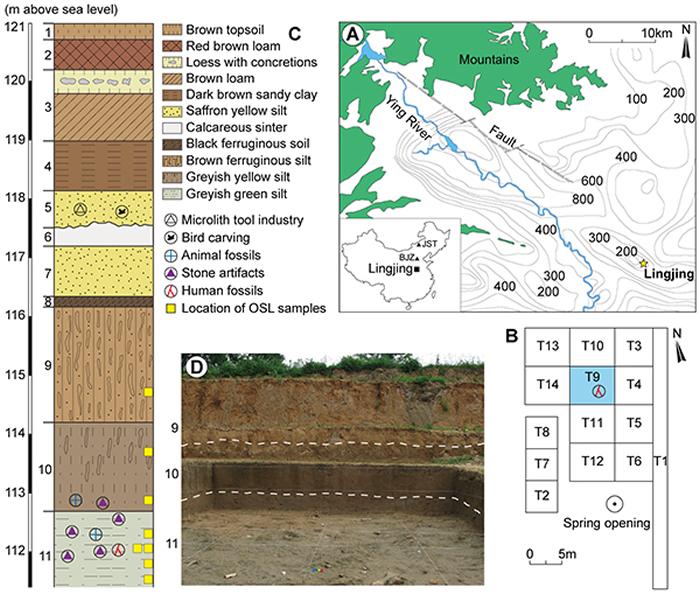河南灵井许昌人遗址地理位置、布方、发掘和地层图(李浩供图)