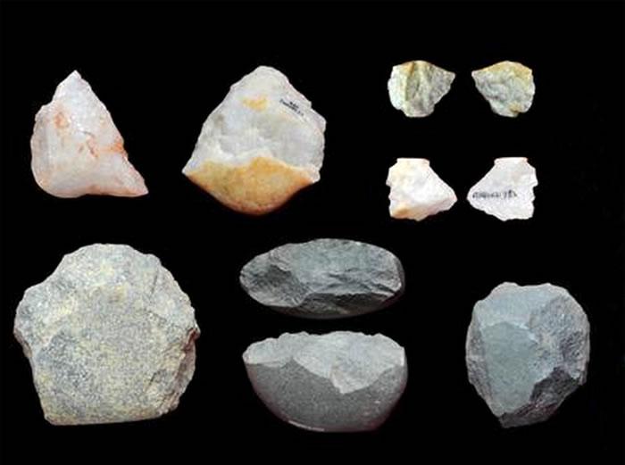 遗址内出土各类石制品3000余件,包括打制石器、石锤、使用砾石、石片、断块、碎屑、石料及少量穿孔石器、局部磨光石器。其中最具代表性的是单面硬锤加工的各类陡刃砾石石器,石器原料主要是利用周边的河滩砾石,无论是单边刃、多边刃还是盘状刃,其形态与加工技术运用都具有定型化生产的特点。