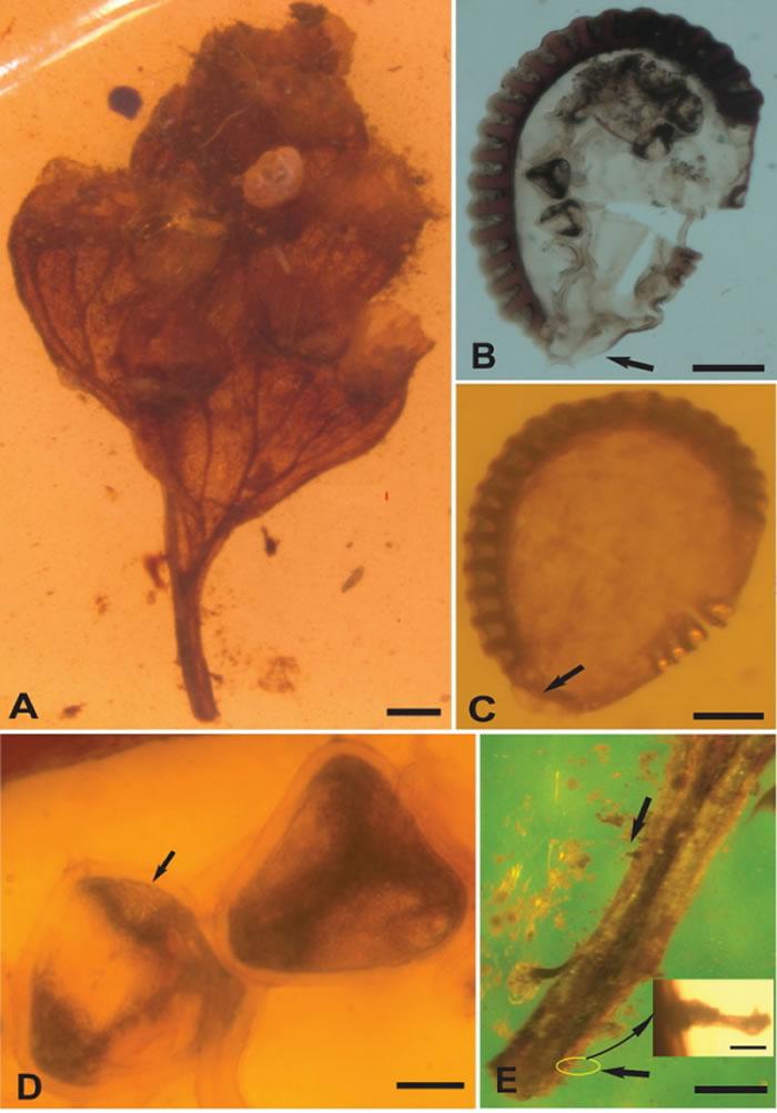 相较而言,琥珀内保存的化石标本在这方面却具有独特的优势。近年来,缅甸琥珀研究持续升温,对比缅甸琥珀内昆虫化石的研究,缅甸琥珀中的蕨类植物化石研究较少,目前仅有德国和美国研究者的几例报道,而且报道过的类群单一,均为水龙骨类,其他类群的研究尚未见报道。