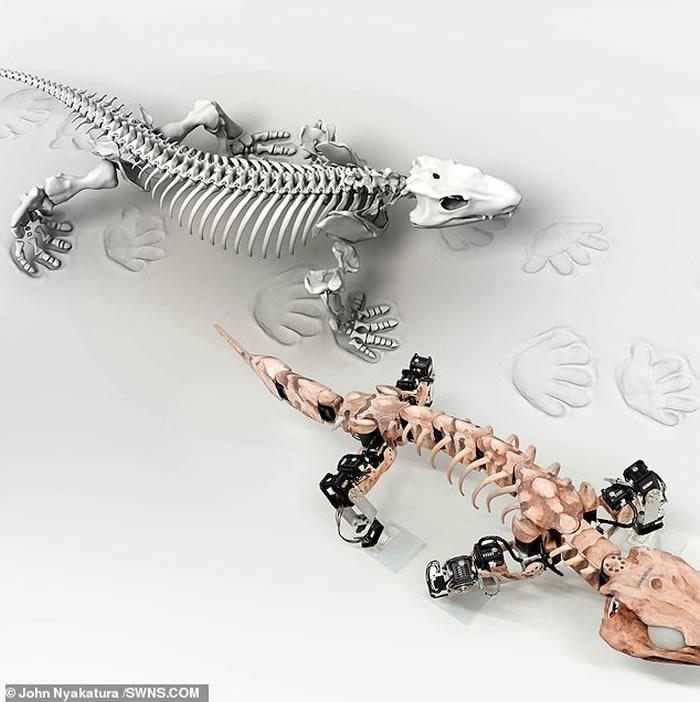 很多动物都可以走出这样的足迹,但是他们移动的形式会稍有个别差异,例如石龙子会让四肢保持接近地面,而鬣蜥行走时则会将上半身抬起,研究共同作者卡米洛. 梅洛(Kamilo Melo)说。 他是瑞士洛桑联邦理工学院(Ecole Polytechnique Fédérale de Lausanne)的生物机器人专家。