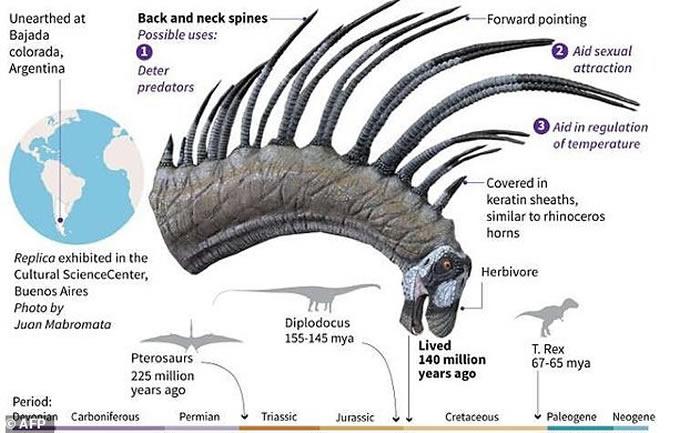 阿根廷巴塔哥尼亚发现叉龙科新品种恐龙 靠尖长背刺自卫
