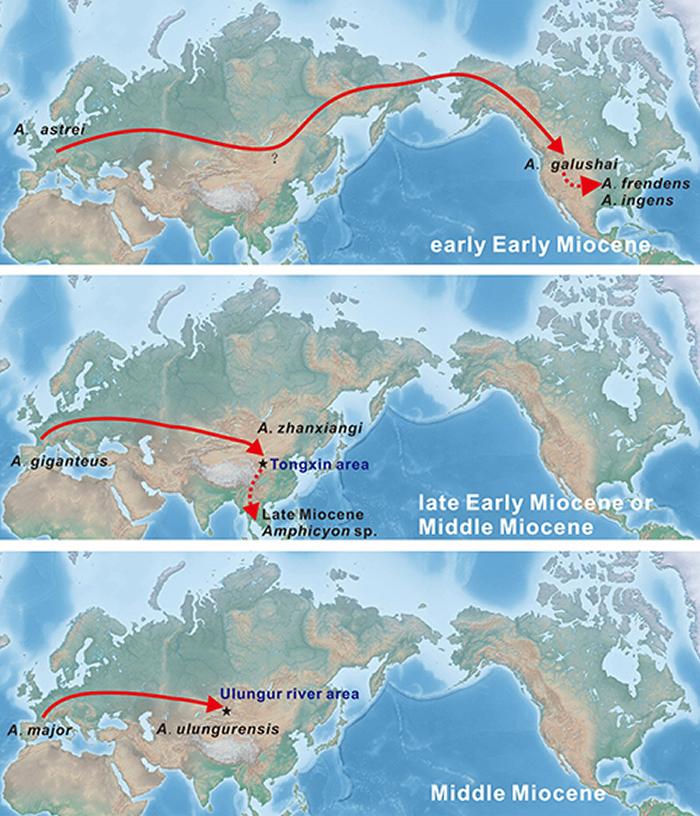 (化石网报道)据中国科学院古脊椎动物与古人类研究所:犬熊科是在中新世(2300-530万年前)叱咤风云的食肉目成员,遍布欧亚非和北美。其中分布最为广泛,种类最多的是犬熊属Amphicyon和泽犬熊属Cynelos,二者尤其在欧洲和北美繁盛。然而作为连接欧洲和北美的桥梁,东亚地区二者的化石记录非常零星。