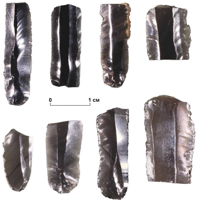 该项研究主要负责人弗拉基米尔·皮图尔科(Vladimir Pitulko)提到,在挖掘的过程中,研究人员发现了许多由石头、骨头、角、獠牙、木头制成的零部件。它们是狩猎武器、雪橇和生活用具的一部分。研究人员同时还发现了许多有微棱形刀刃的岩屑制品,它们应当是矛、镖、箭和刀具的一部分。在发现的这些物品中,有一部分是由黑曜石制作而成的,但黑曜石并不是该地区常见的原材料。