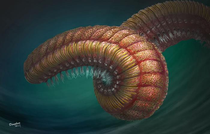 云南澄江动物群中的环节动物多毛类古扇虫 Ipoliknus avitus复原图(杨定华绘)