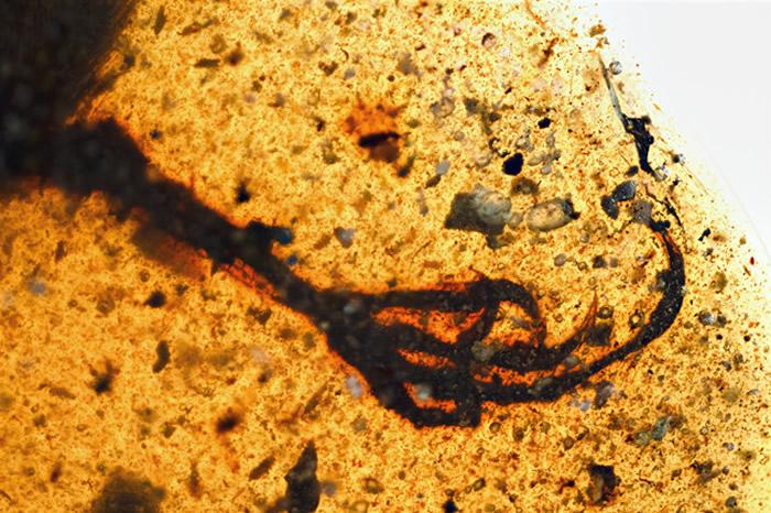 琥珀鸟的软组织保存得非常好,在显微镜下可观察到其角质鳞丝状羽稀疏分布于趾骨的背侧表面,还有左翼尖的羽毛区域暴露于琥珀表面。“琥珀鸟的第Ⅲ趾显著延长,这在任何中生代鸟类中都没有观察到,加上大型的弯曲爪子、相当长的第Ⅰ趾,都强烈暗示着这是一种树栖的适应特征。”团队成员之一、中国科学院古脊椎动物与古人类研究所美籍研究员邹晶梅表示。