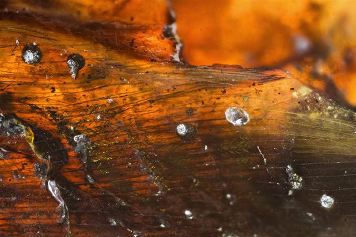 琥珀鸟羽毛特写(摄影/邢立达)