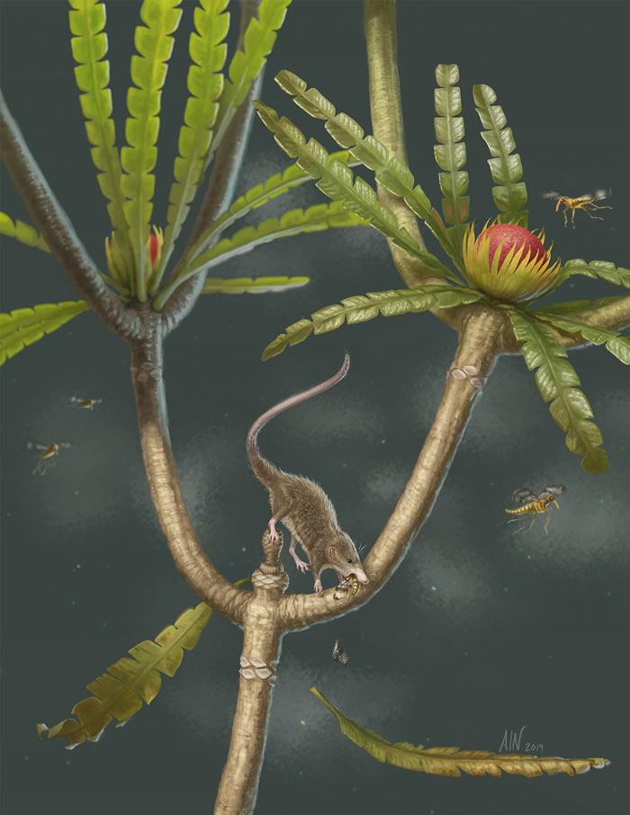 新的哺乳型动物“微小柱齿兽”(Microdocodon)复原图(Credit: April I. Neander)