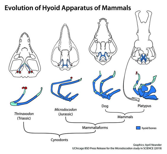 新的侏罗纪哺乳型动物揭示了哺乳动物舌骨的早期演化(Credit: April I. Neander, the University of Chicago)