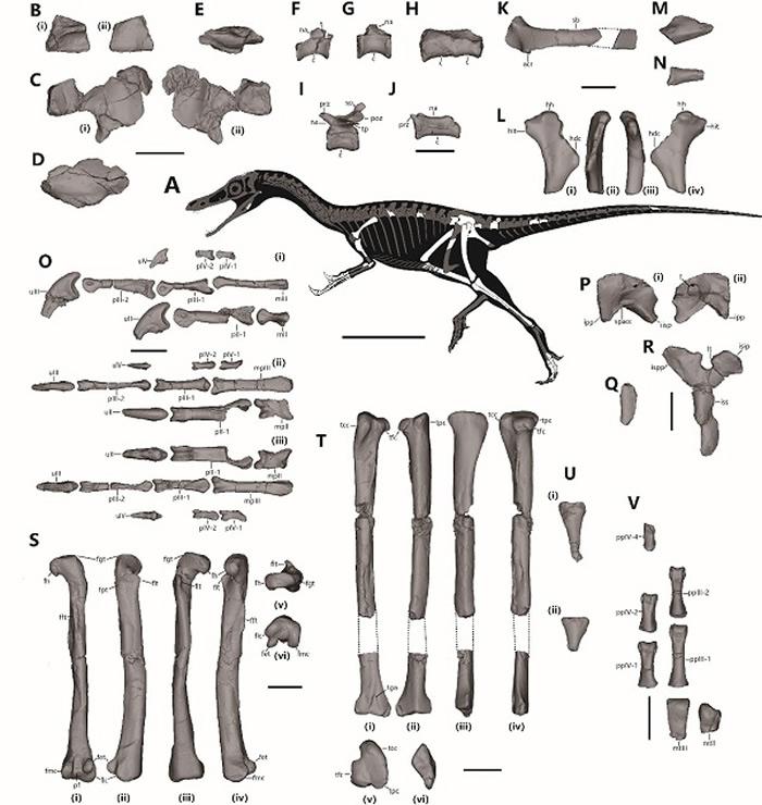 据了解,石树沟组位于准噶尔盆地东缘,富含硅化木、无脊椎动物、有脊椎动物化石,是世界上研究中-晚侏罗世恐龙动物群最为重要的组。此前,石树沟组已经发现了两种阿尔瓦雷斯龙类恐龙,分别为灵巧简手龙和赵氏敖闰龙,并与意外石树沟爪龙一起,构成了世界范围内已知最早的阿尔瓦雷斯龙类化石分布。这三种阿尔瓦雷斯龙在形态和体型上差异明显,表明阿尔瓦雷斯龙类恐龙在目前已知最早的化石记录就已具有较高多样性。