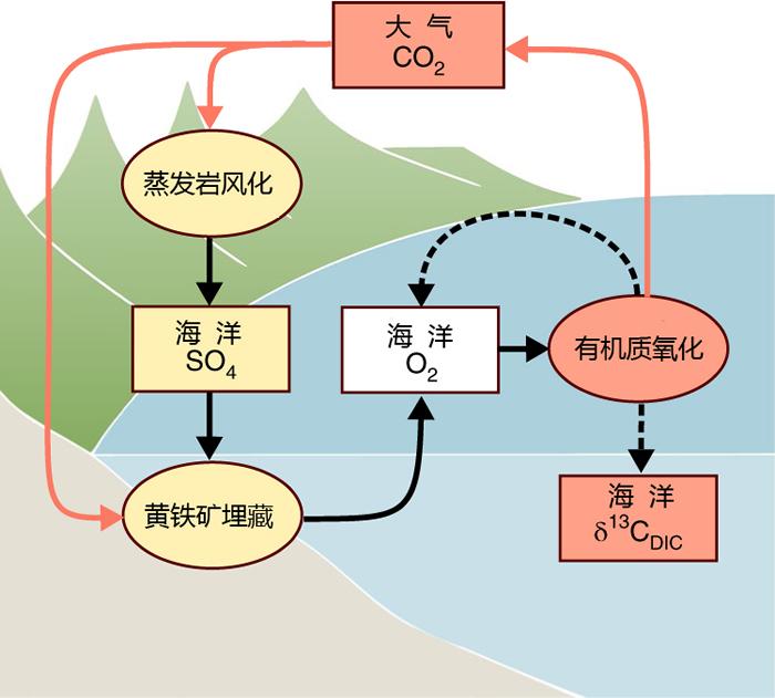 蒸发岩风化与海洋有机碳库氧化的正反馈模型图