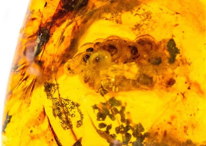 (化石网报道)据解放日报·上观新闻记者获悉,10月11日,中外科学家团队宣布,他们在距今约一亿年的白垩纪琥珀中首次发现了两栖类、腹足类以及昆虫产下的卵团,这对我们理解古生物的产卵行为,以及动物与环境协同演化有重要的意义。该研究由中国地质大学(北京)邢立达副教授团队,英国伦敦大学学院教授苏珊·E·埃文斯,加拿大萨斯喀彻温省皇家博物馆的教授瑞安·麦凯勒等专家学者共同研究,其成果发表在国际知名古生物学期刊《历史生物学》上。