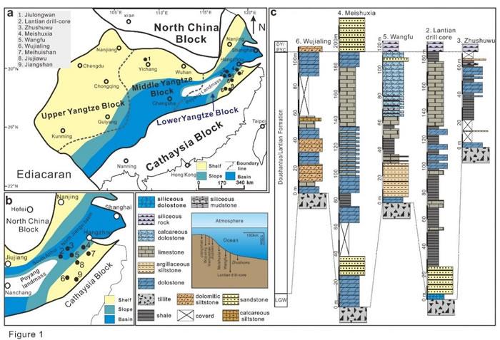 我国埃迪卡拉纪地层主要分布在以峡东地区为代表的华南扬子地台,是研究新元古代晚期古海洋环境的理想地区。经过几十年的不懈努力,学界前辈们基于我国及国外的地层,对埃迪卡拉纪的古海洋的恢复得出了多种结论,主要观点包括:1)部分学者认为早中期的埃迪卡拉纪深层海水是铁化的,即深层海水的氧化还原状态类似于25亿年前的太古代海洋,水环境中充斥着游离的二价铁离子,这种铁化的海水一直持续到早古生代陆地植物的兴起。2)部分学者则认为埃迪卡拉纪早中期的深层海水至少在局部范围内完成了氧化,氧化的水体有利于埃迪卡拉纪的生物群,例如蓝田生物群、庙河生物群、翁会生物群的发生。以上结论的研究材料多集中在中上扬子区,并均各有独立的地球化学证据支持。