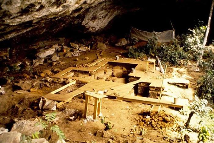 研究人员上世纪就展开了对“Shum Laka”岩窟中双人墓穴的挖掘。(Image: Isabelle Ribot, January 1994)
