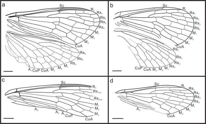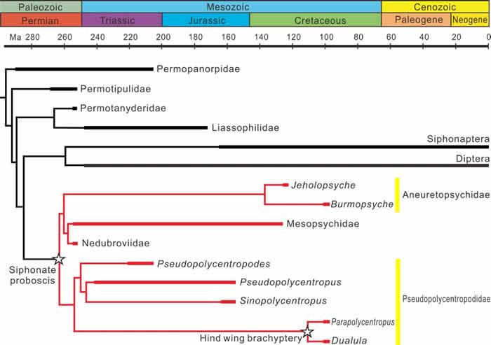 研究团队对38个化石类群的54个特征进行系统发育分析,结果表明中生蝎蛉总科为一单系群,其长口器可能起源于二叠纪晚期。