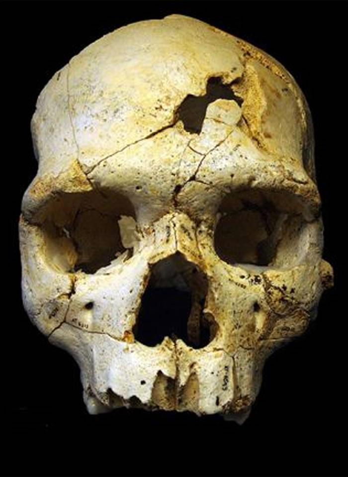 在西班牙Sima遗址出土的一个43万年前的头骨上,发现了两处可致命的颅骨骨折伤痕。这里被认为可能是迄今为止发现的最古老的人类丧葬遗迹。(图片来源: Van Leeuwen, E.J.C. et al. 2017)
