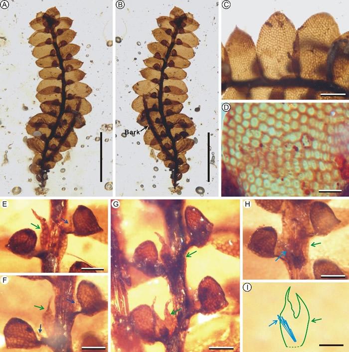 (化石网报道)据中国科学院南京地质古生物研究所:近年来,白垩纪琥珀中的古生物研究取得积极进展,但是对其中的苔类植物的了解和报道较少。近期,中国科学院南京地质古生物研究所王永栋研究员、李亚博士,中国科学院西双版纳热带植物园Harald Schneider研究员以及中国科学院植物研究所吴鹏程研究员合作,对缅甸克钦邦白垩纪中期琥珀苔植物进行深入研究并取得了系列成果。