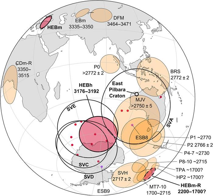 对东皮尔巴拉克拉通(East Pilbara Craton)的历史长达近32亿年的Honeyeater玄武岩(它是位于澳大利亚西部的一块稳定地壳)持续存留磁性进行的分析就33.5亿-31.8亿年前该块地壳纬度相对于地球磁极的大幅变化提出了强有力的证据。这一证据将现代板块运动的开始时间推迟到古太古代晚期,它支持了这样的理论,即地壳的变化是由与我们如今所观察到的连续、均一的相似过程所导致的,或地壳至少经历了间歇性的活动与静止期之间的切换。